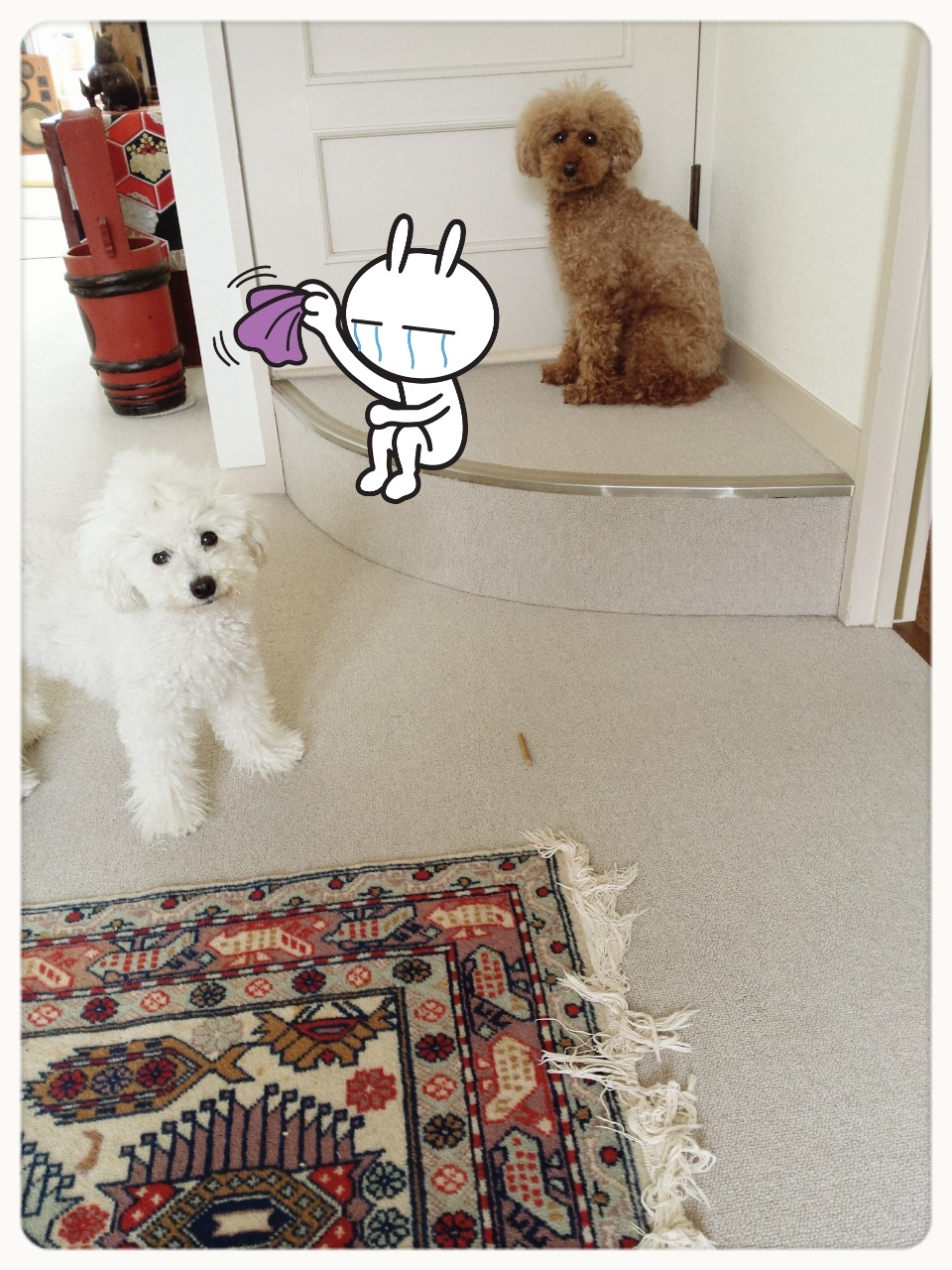 じゃあねー 今日は外出なの。連れてお散歩行ってもらえないってわかったバックスはおやつも拒否(‘*‘)定位置で可哀想な僕アピール(笑)てかさ…パパさんいるし(笑)自分の食べたルーシーが狙ってるよΨ( ̄∇ ̄)Ψ