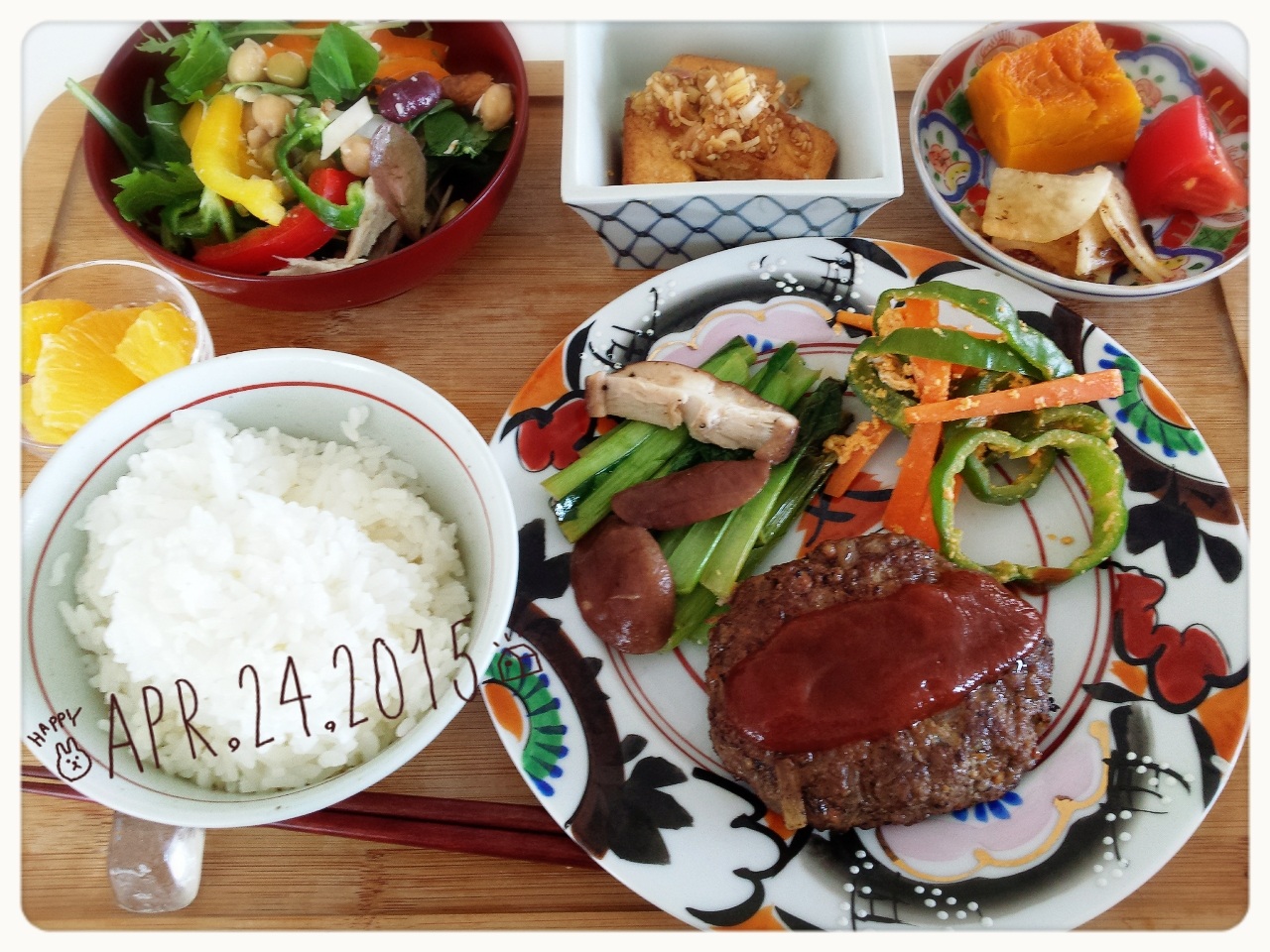 ハンバーグのせてるお皿…父の実家から貰った物で、100年以上前の物とは思えない斬新なデザインでお気に入り…割っちゃった(T▽T)
