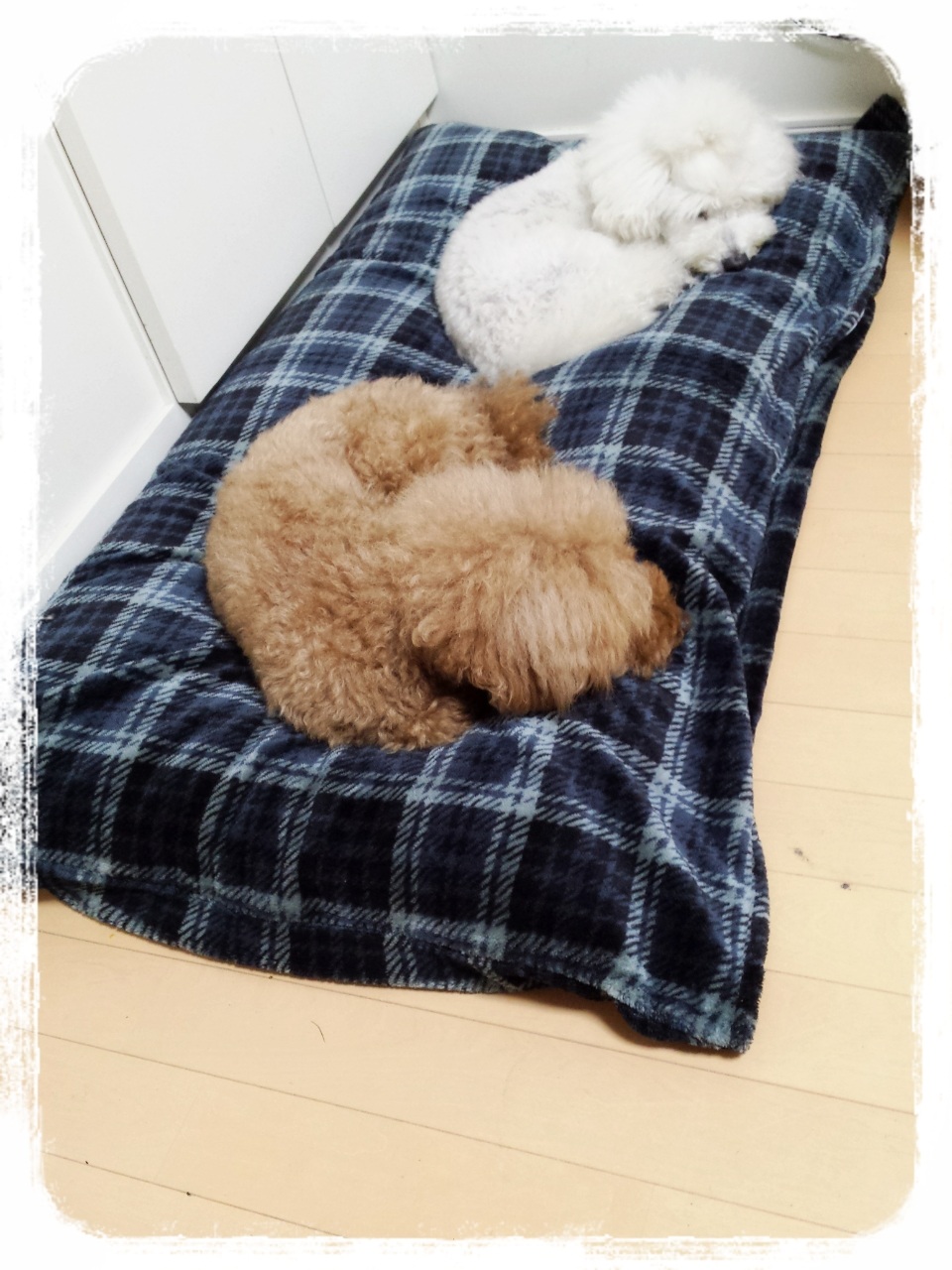 ベッド いまいち落ち着かない感じだったのは…夏用のベッドで寒いのかもと気づき、ホームセンターで長座布団と冬用かばーを買いました。置いた途端寝てくれた。人は夏でもフリース着てストーブつけてたのに、気が利かなくてごめんねー(^^;ちょっといけてないチェックだけど、長座布団とカバーであわせて1500円しなかったの(^^)b