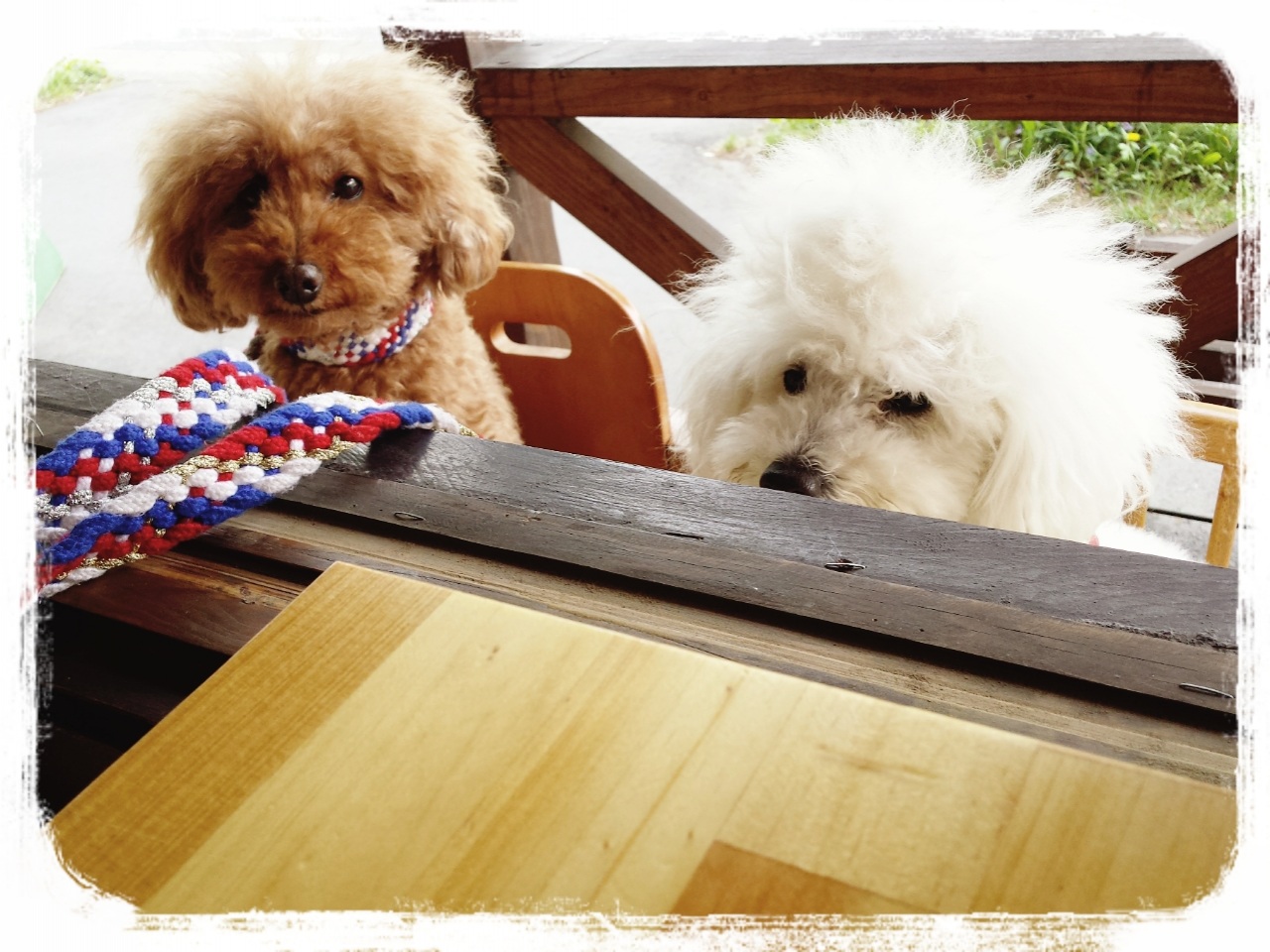 店内ワンコ駄目だけど、窓席の外に椅子を置いてくれたので…一緒にいる風(^^)b