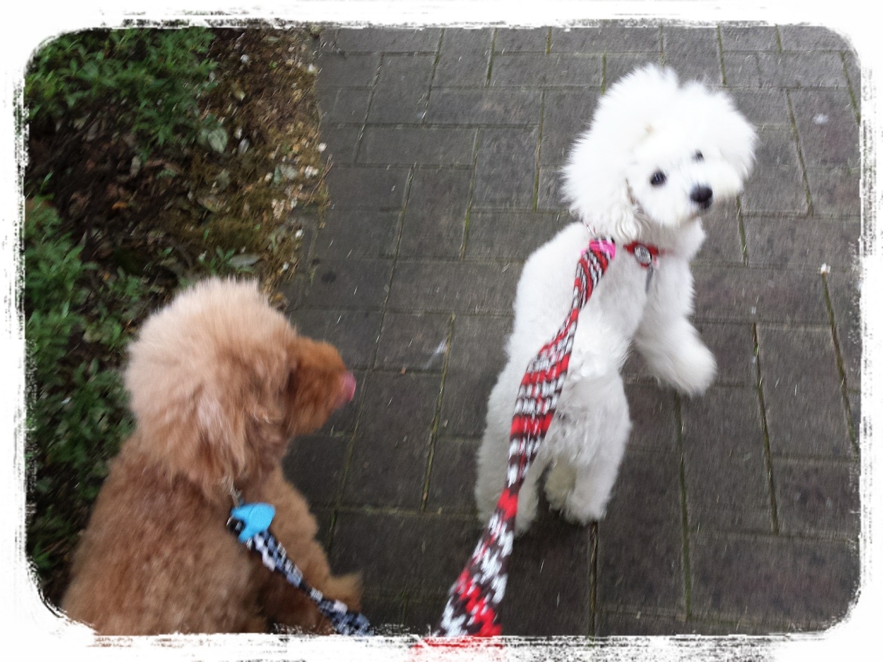 トイプードルのバックス(♂2004.8.2生・レッド)ルーシー(♀2008.10.18生・ホワイト)とのんびり暮らしている飼い主 Risa です。2匹あわせて11キロになってしまい、ぎっくり腰寸前ですが、渋谷・代官山・中目黒に出没しています。見かけたら声かけてくださいね♪メインブログ 「トイプー バックス君は今日も行く 2」http://ameblo.jp/bucsk0802/ にも遊びに来てください♪