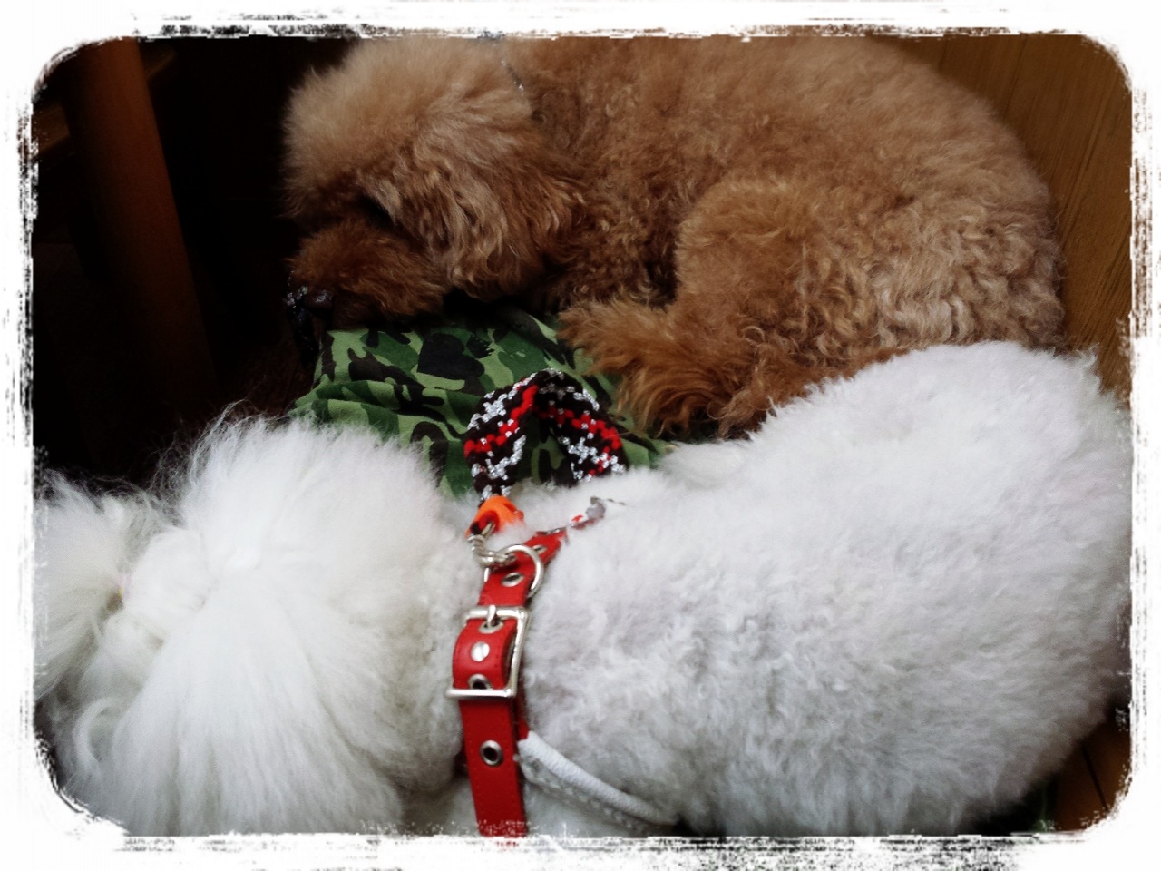 トイプードルのバックス(♂2004.8.2生・レッド)ルーシー(♀2008.10.18生・ホワイト)とのんびり暮らしている飼い主 Risa です。2匹あわせて11キロになってしまい、ぎっくり腰寸前ですが、渋谷・代官山・中目黒に出没しています。見かけたら声かけてくださいね♪メインブログ 「トイプー バックス君は今日も行く 2」http://ameblo.jp/bucsk0802/ にも遊びに来てください♪