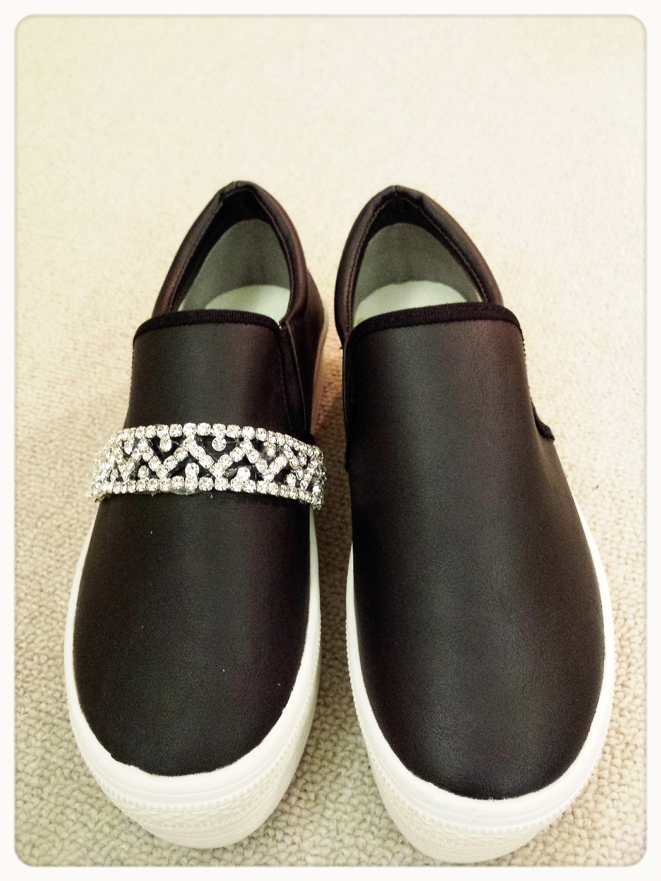 黒のスリッポンもポチっていて、こちらは横にシンプルにつけました(^^)