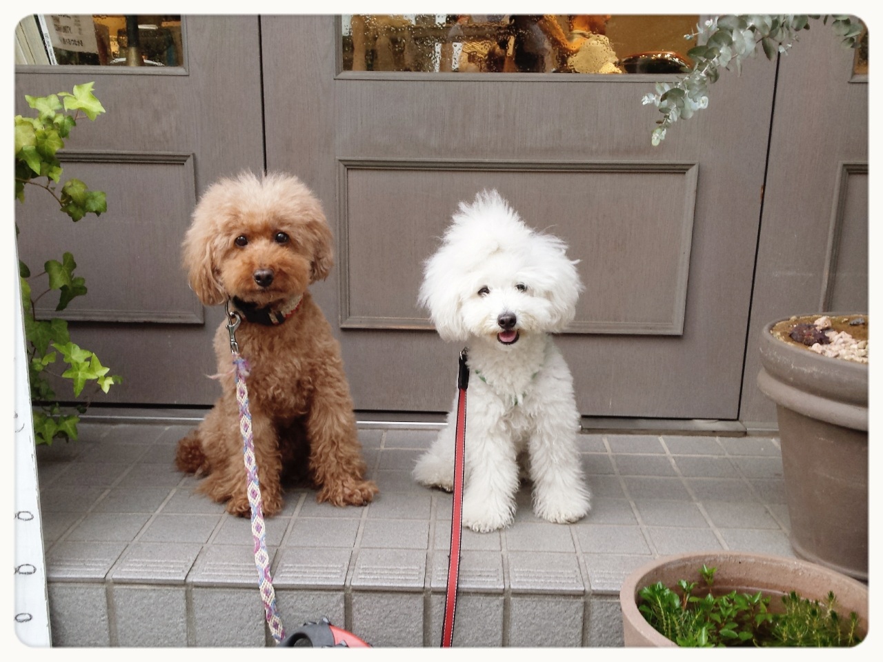 トイプードルのバックス(♂2004.8.2生・レッド)ルーシー(♀2008.10.18生・ホワイト)とのんびり暮らしている飼い主 Risa です。2匹あわせて11キロになってしまい、ぎっくり腰寸前ですが、渋谷・代官山・中目黒に出没しています。見かけたら声かけてくださいね♪メインブログ 「トイプー バックス君は今日も行く 2」http://ameblo.jp/bucsk0802/ にも遊びに来てください♪