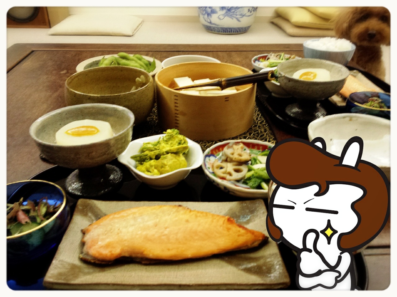 パパさんリクエストで、鮭と冷奴と酢の物等々。