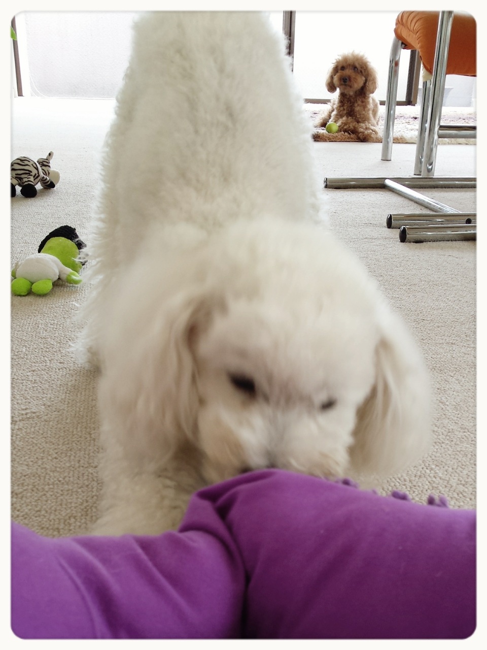 あばれるーしー 来客中なのにるっちゃん大暴れ(^^;まぁね…お散歩できないバックスにつきあい、ほとんど外に出てないからね…けど、パパさんが行こうって言ってくれても、バックスと私が行かないと1歩も歩かないし┐('〜`;)┌バックスの前ではボール投げとかできないし┐('〜`;)┌困ったねー┐('〜`;)┌