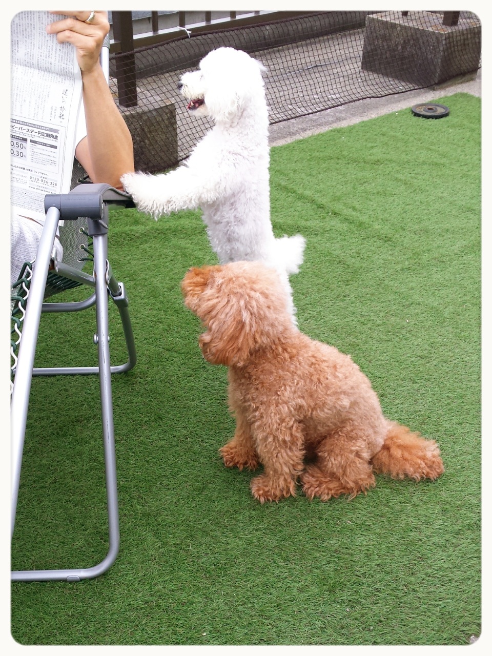 トイプードルのバックス(♂2004.8.2生・レッド)ルーシー(♀2008.10.18生・ホワイト)とのんびり暮らしている飼い主 Risa です。2匹あわせて11キロになってしまい、ぎっくり腰寸前ですが、渋谷・代官山・中目黒に出没しています。見かけたら声かけてくださいね♪メインブログ 「トイプー バックス君は今日も行く 2」http://ameblo.jp/bucsk0802/ にも遊びに来てください♪