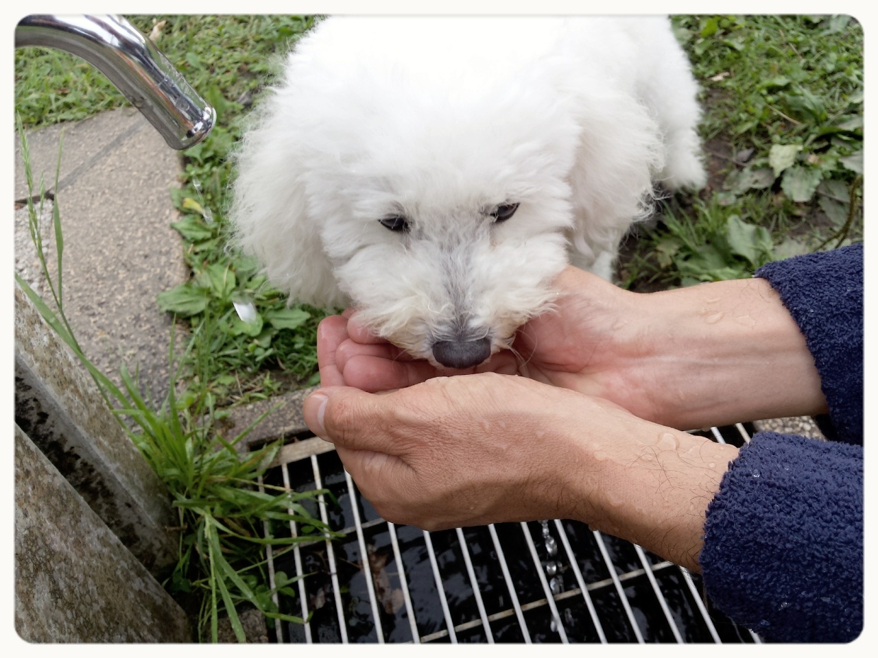 いっぱい走ったから水を…