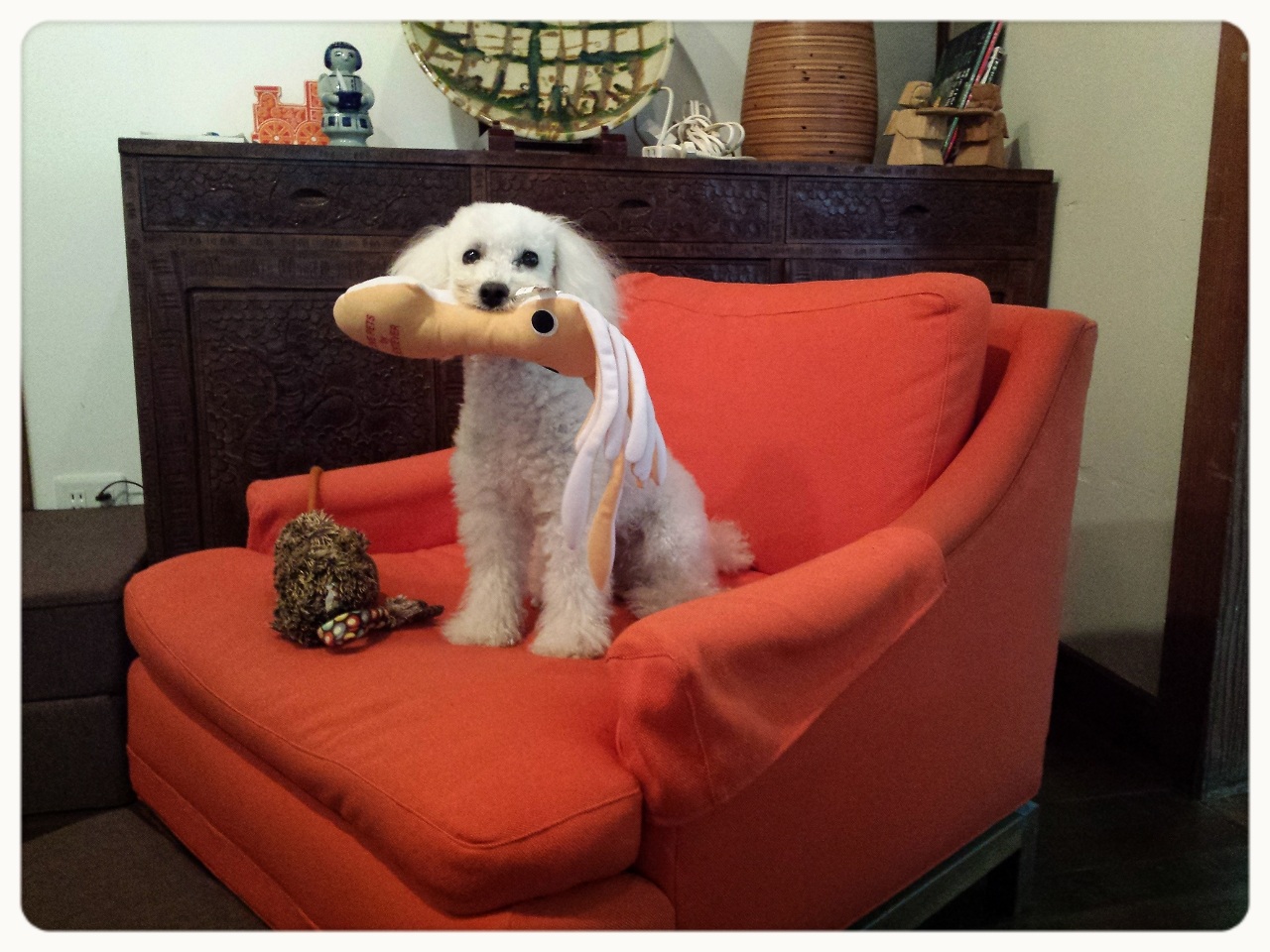 灯油 寝坊して起きたら灯油の配達が来て、裏のタンクにホースを繋いでて…犬的にすごく怪しいが!! ルーシーさん…吠えそうな気持ちを抑えるべく、イカくわえてますフガフガ聞こえるけど…それは良しとしよう(^^)d