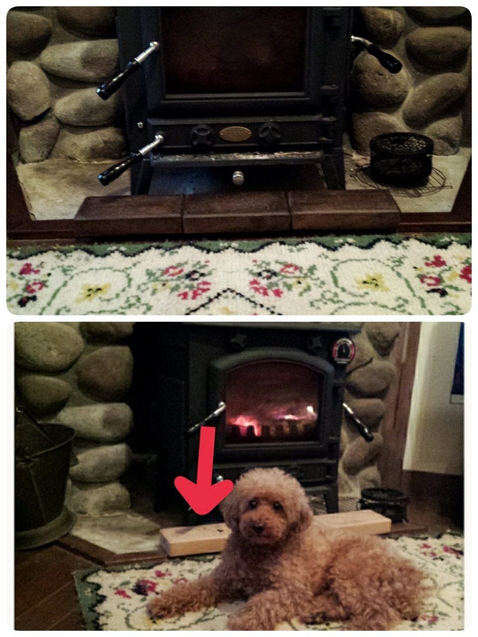 塗ってたレンガはストーブの前に置いてたの