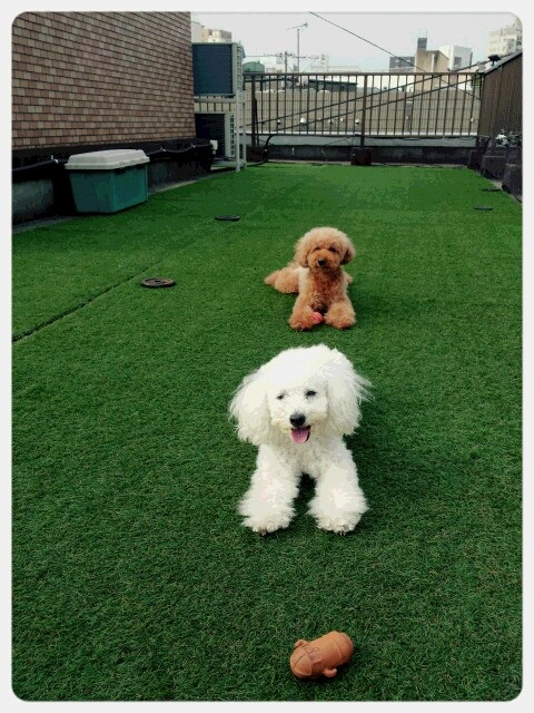 トイプードルのバックス(♂2004.8.2生・レッド)ルーシー(♀2008.10.18生・ホワイト)とのんびり暮らしている飼い主 Risa です。2匹あわせて11キロになってしまい、ぎっくり腰寸前ですが、渋谷・代官山・中目黒に出没しています。見かけたら声かけてくださいね♪メインブログ 「トイプー バックス君は今日も行く 2」http://ameblo.jp/bucsk0802/ にも遊びに来てください♪