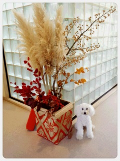 玄関だとウンベラータが可哀想なので元の場所に戻し、玄関は桐の枝とすすきで秋っぽく(^^)