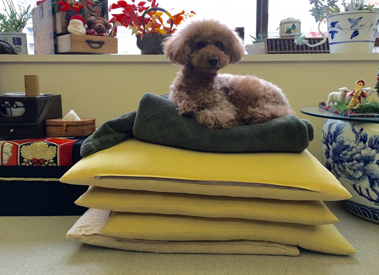 ドタバタ お散歩出ようとすると荷物が届いたり、用事思い出したりドタバタしちゃってもうこんな時間に(^◇^;)で、写真撮ったら座布団カバーを買い換えようと思ってたこと思い出しちゃったもうちょっとだけ待っててね