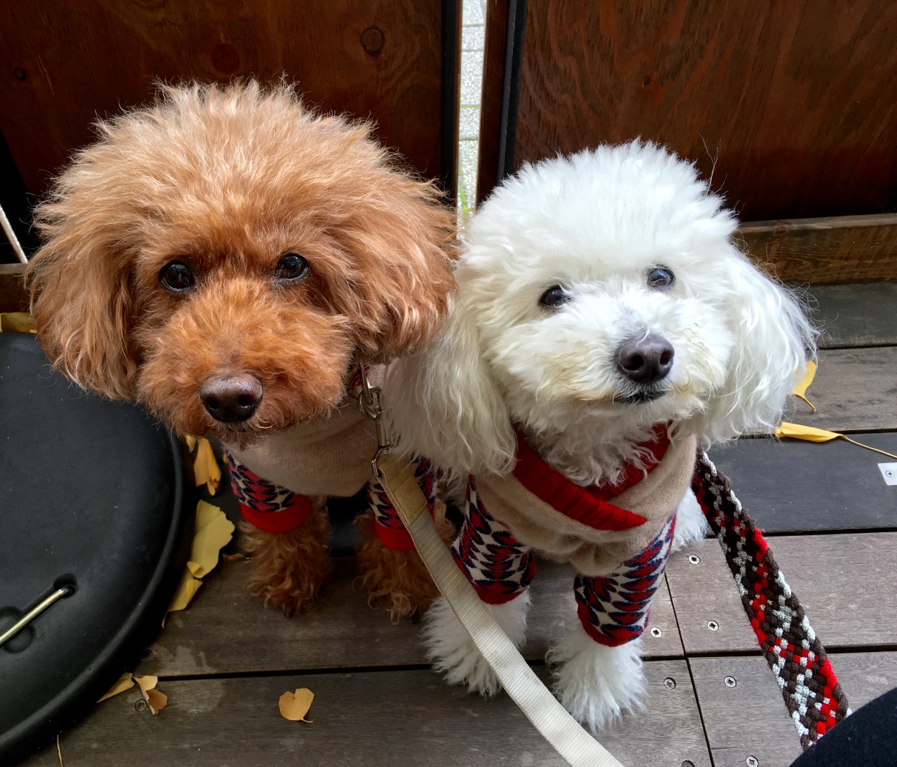 トイプードルのバックス(♂2004.8.2生・レッド)ルーシー(♀2008.10.18生・ホワイト)とのんびり暮らしている飼い主 Risa です。2匹あわせて11キロになってしまい、ぎっくり腰寸前ですが、渋谷・代官山・中目黒に出没しています。見かけたら声かけてくださいね♪メインブログ 「トイプー バックス君は今日も行く 2」http://ameblo.jp/bucsk0802/ にも遊びに来てください♪