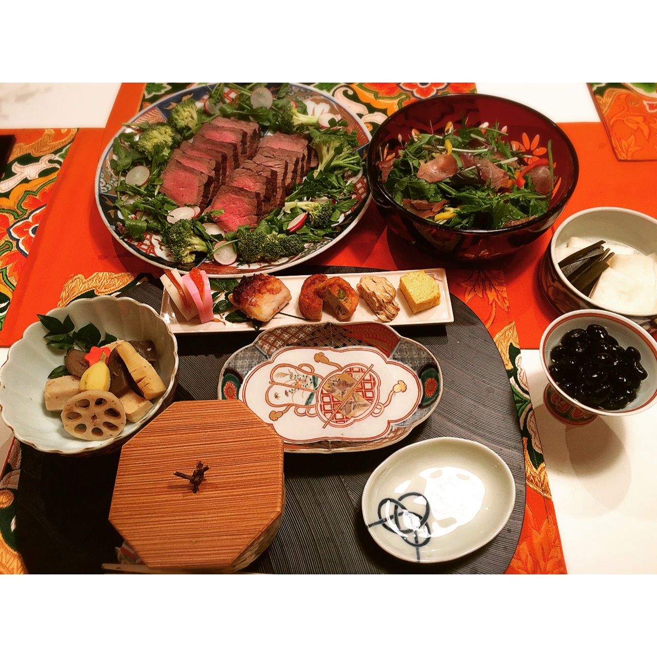 終了 残った鯛を鯛飯にして夕食で御節終了\(^o^)/実は私...御節そんなに好きじゃないの普段すごい薄味だから、御節の濃い味付けがちょっと苦手鯛飯とは合わないけどローストビーフと鰤の燻製サラダ作りました(^^)本当は友達の作ってくれる絶品伊達巻がもう1本あるんだけど、これは去年作って美味しかった「伊達巻ラスク」にして食べるんだ♪(*^^)