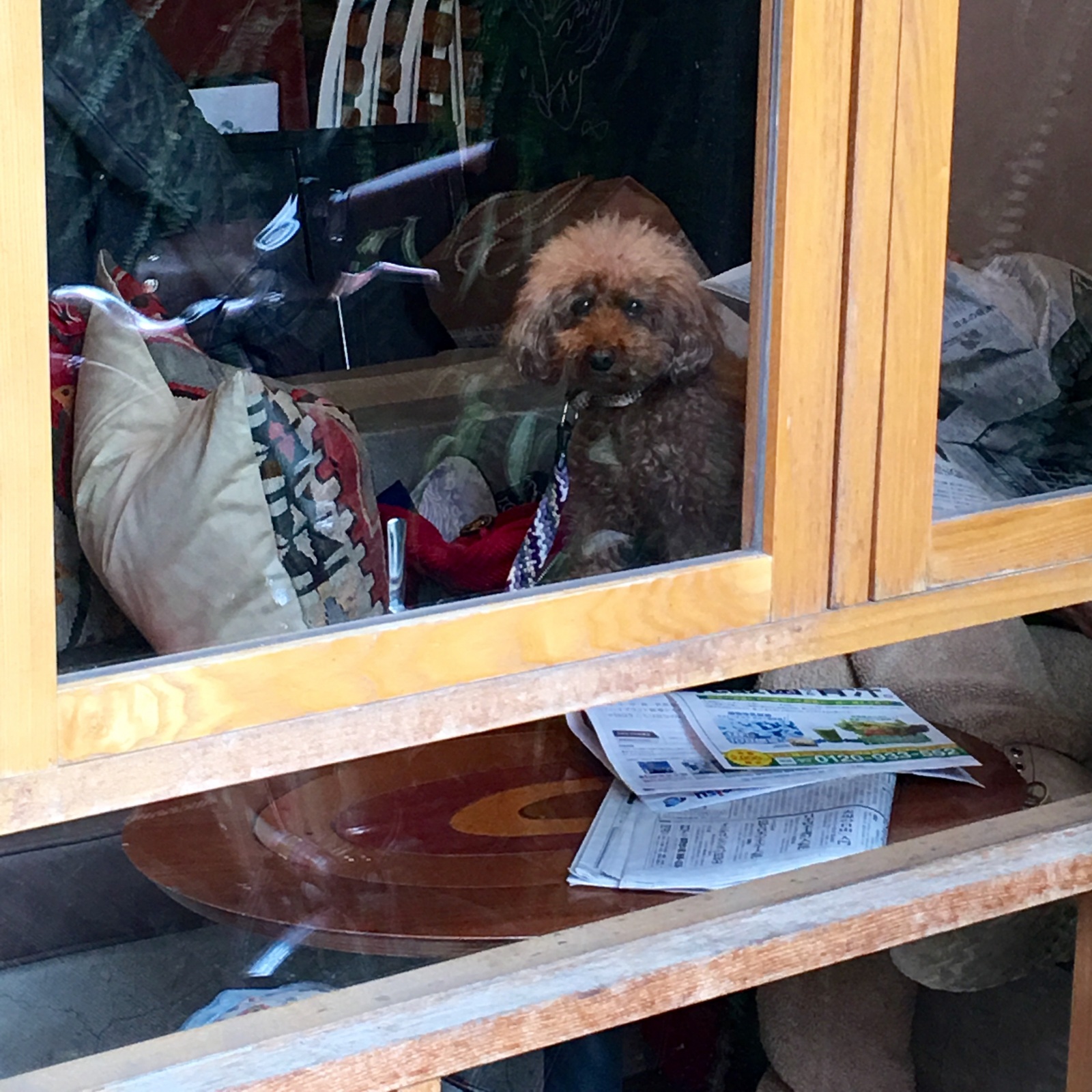 店内から睨んでくる犬がいるぅー